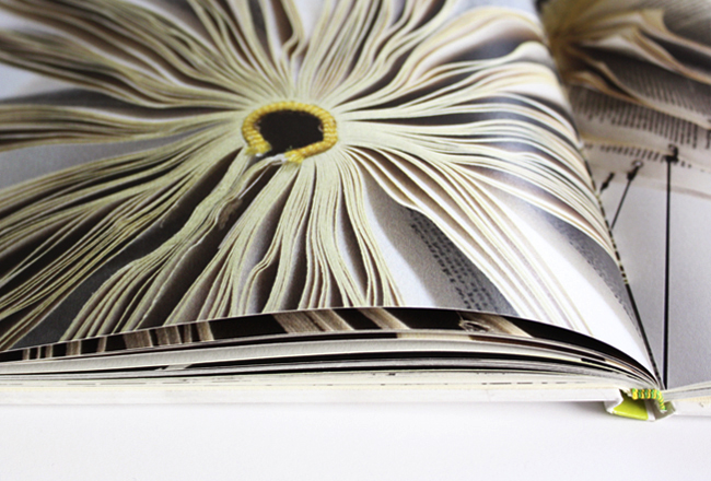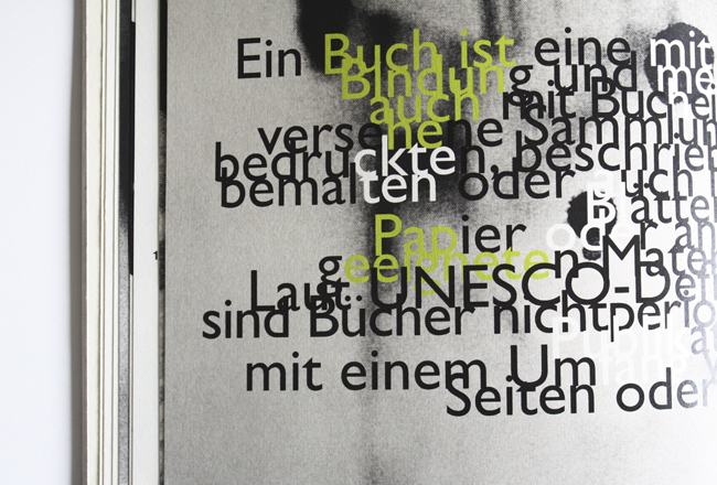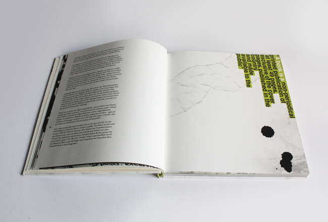 des Buches wurde viel mit Collagen gearbeitet und mit Typografie experi-mentiert. Außerdem beinhaltet das Buch eine Menge von großformatigen Objektaufnahmen, die als eigentlicher Schwerpunkt der Gestaltung dienen.